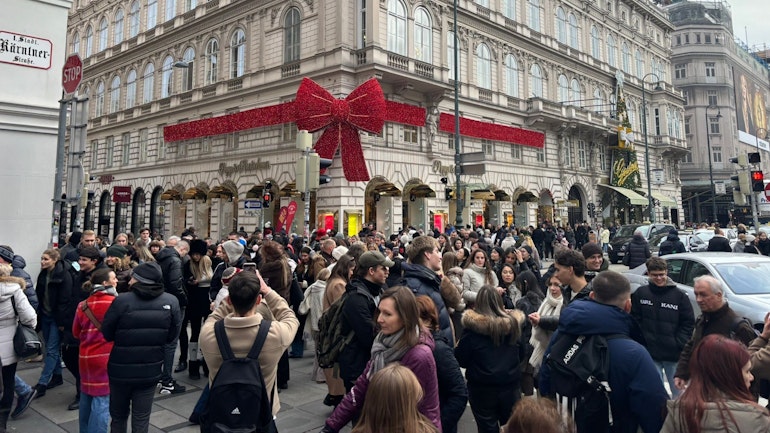 Der Ansturm hat am zweiten Einkaufssamstag im Advent zu chaotischen Zuständen geführt. Gegen 13 Uhr am Samstag platzte die stark frequentierte Kreuzung Kärntner Straße und Walfischgasse förmlich aus allen Nähten. Die Gier nach dem perfekten Foto treibt viele Selfie-Jäger dazu, rücksichtslos die Straße zu betreten – ungeachtet der Ampelregelung und der Verkehrsregeln.