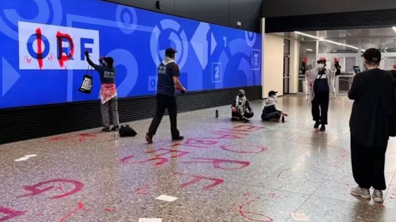 Am Boden des ORF-Zentrums hinterließen die Eindringlinge Botschaften in roter Farbe. Ein Schriftzug lautete „ORF enabled Genocide“ (Der ORF ermöglicht einen Genozid). Das bekannte ORF-Logo wurde ebenfalls mit roter Farbe in „IDF“ – die Abkürzung für die Israelischen Verteidigungsstreitkräfte – umgewandelt. Zudem verteilten die Aktivisten Flugblätter in verschiedenen Büros und skandierten lautstark Parolen. Der Protest richtete sich gegen die israelische Politik im Gaza-Konflikt und die angebliche Berichterstattung des ORF dazu.